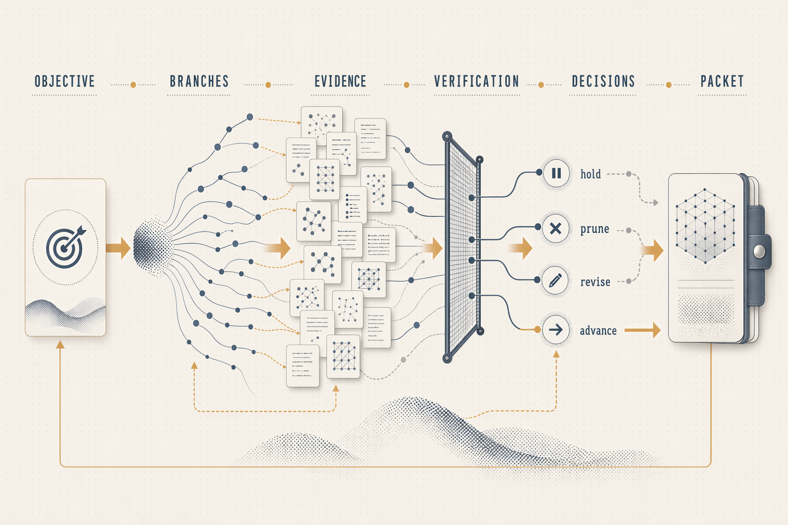 The result was decision compression before physical spend. Reactor did not win by generating the largest candidate pile. It made a physical-validation campaign inspectable. Many plausible branches went in. One packet came out with an evidence boundary, pass/fail thresholds, a fallback branch, and a replay trail.